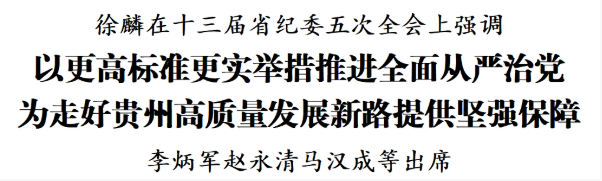 2月1日,十三届省纪委五次全会在贵阳召开。省委书记徐麟出席会议并讲话。他强调,要深入学习贯彻习近平总书记在二十届中央纪委五次全会上的重要讲话精神,进一步贯彻落实习近平总书记在贵州考察时的重要讲话精神,以更高标准、更实举措推进全面从严治党,为走好“十五五”时期贵州高质量发展新路提供坚强保障。