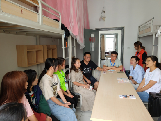 杨慧颖、李雪芬对新生们的到来表示欢迎,对新同学们详细解读国家目前对职业教育发展规划总体规划情况,解读国家、学校奖助学金政策,亲切地询问同学们对校园生活、寝室环境是否适应。老师们还征求了同学们对学校学习、生活、住宿等方面的建议意见。并叮嘱新生们要尽快适应环境,珍惜美好大学时光,科学规划大学生活,过好充实有价值的大学生涯。老师们还提醒新同学将来在学习、生活上遇到困难要积极向学校老师反应,健康成长,努力成才。