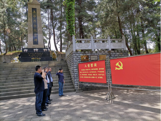 烈士陵园内庄严肃穆,革命烈士纪念碑魏然耸立,“革命历史永垂不朽”的字样格外醒目。在庄严肃穆的革命烈士纪念碑前,全体党员怀着沉痛的心情学习了烈士们的丰功伟绩,面向党旗,紧握右拳、重温入党誓词,再次大声念起庄严的80个字,接受了一次深刻的党性教育和灵魂洗礼。