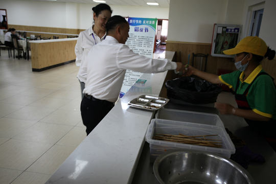 通过监督检查,当天学校教职工食堂早餐就餐人数214人、午餐就餐人数246人,未发现浪费粮食的行为,党代表、其他教职工均自觉严格按照“勤拿少取”的原则,监督员发现在碗盘回收处前来放碗筷的党代表们几乎个个“空盘”,碗中只剩残余菜汁或鱼骨头,积极践行“光盘行动”。党代表是党员中的优秀分子,更应自觉践行节约理念,带头做厉行节约反对浪费理念的传播者、实践者和示范者。“一米一粟当思来之不易”节约粮食,是我们每个公民应尽的义务。