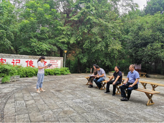 在廉政文化广场杨慧颖同志为全体党员作了题为《中国共产党入党誓词的历史沿革》的党课。杨慧颖同志向全体党员介绍了5个时期入党誓词的变化和将入党誓词写入《党章》的重要性。