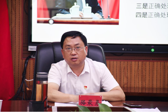 骆最勇结合个人学习收获、问题检视和纪检干部履职担当等问题,围绕深刻认识开展学习贯彻习近平新时代中国特色社会主义思想主题教育和纪检监察干部队伍教育整顿的重大意义,切实增强政治自觉;学深悟透习近平新时代中国特色社会主义思想的主要内容,牢固树立正确的政绩观;牢记职责使命,努力在推进全面从严治党中履职担当等三个方面向大家作了讲授和分享。